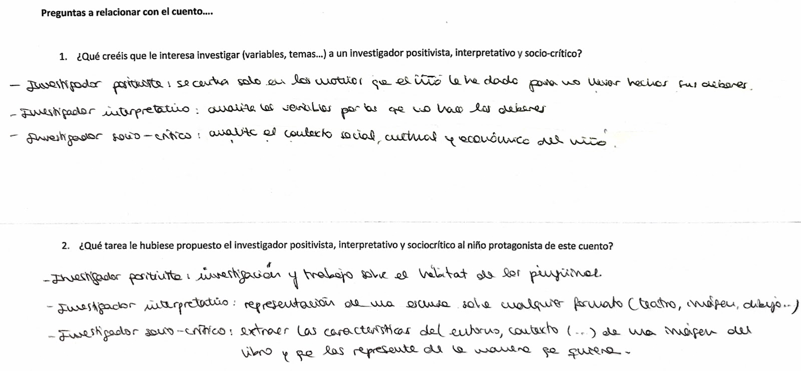 Después de habernos reunido en diferentes grupos, a cada integrante nos ha tocado un paradigma a poner en común, analizarlo, explicárnoslo y, si teníamos dudas sobre ello, resolvérnoslas. Después de ello nos hemos puesto con nuestro grupo de referencia y en él hemos realizado la siguiente tabla recogiendo la información recabada: