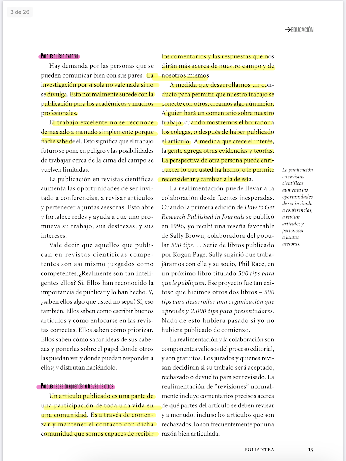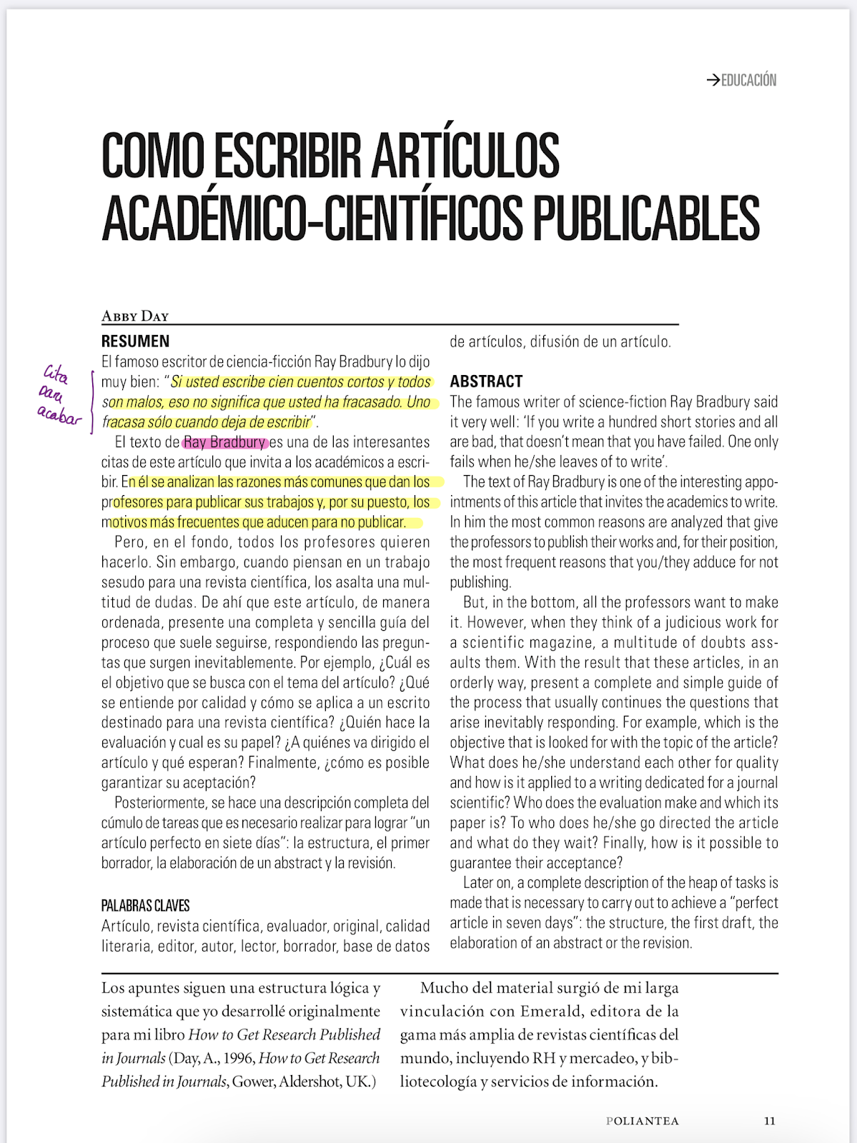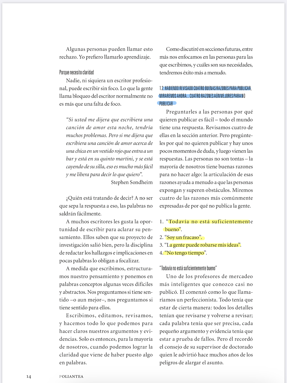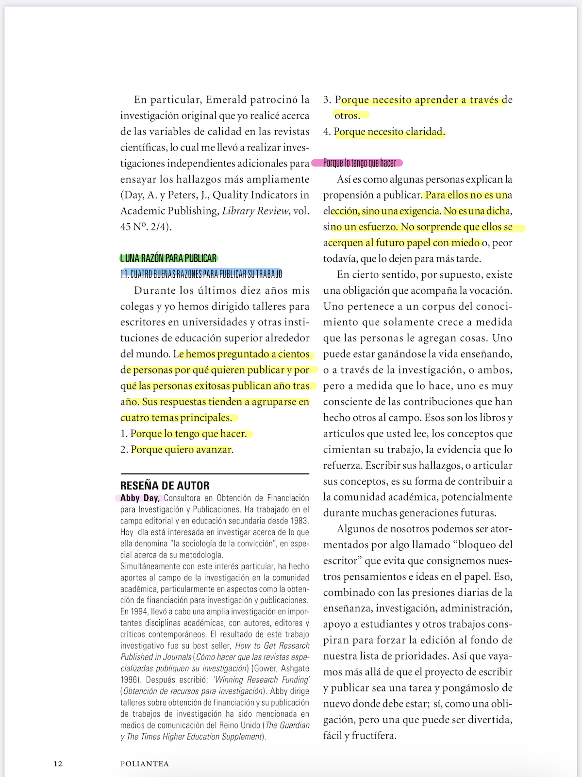 En esta parte del texto, hemos encontrado algunas frases interesantes de la autora, que nos motivan a continuar con nuestro trabajo de investigación y que también nos hace apreciar más el trabajo y el esfuerzo que hacen aquellos profesionales que publican:
