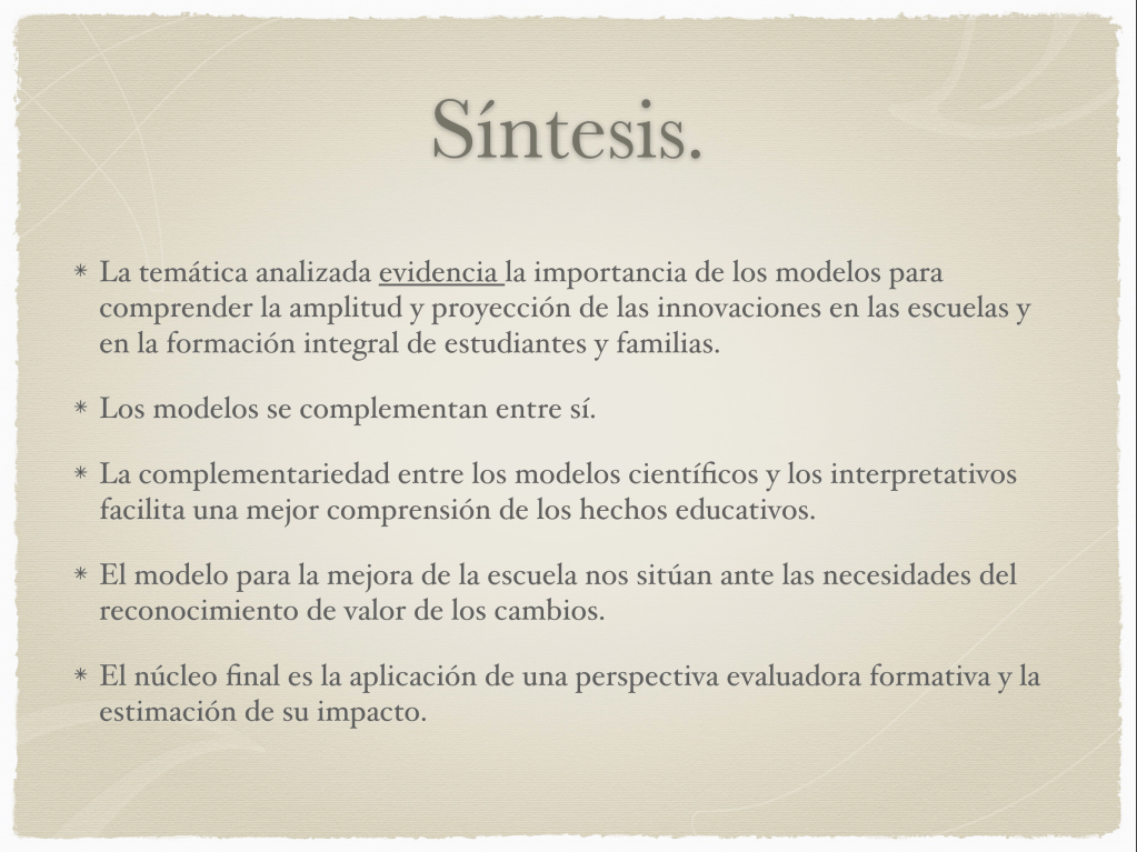 Como conclusión final: tenemos la obligación de extender universalmente las buenas prácticas pedagógicas y didácticas que crearán nuevos modelos para atender a la diversidad y heterogeneidad de la población escolar con el fin de conseguir el mejor desarrollo integral de los individuos.